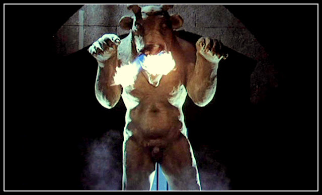 Η στάση της τοπικής κοινότητας αποδεικνύεται προβληματική, όπως συμβαίνει με την περίπτωση της χήρας (Άννα Μαντζουράνη) και του ξενοδόχου-καταστηματάρχη (Ανέστης Βλάχος), αν και περισσότερο προκλητικός εμφανίζεται να είναι ο τοπικός άρχοντας (Πήτερ Κούσινγκ). Ο Κούσινγκ αποδεικνύεται ότι δρα ως ο αρχηγός των ντόπιων χωρικών, που λατρεύουν τον Μινώταυρο, με στοιχεία από πανάρχαια παγανιστικά έθιμα, τα οποία κορυφώνονται με την τέλεση ανθρωποθυσιών. Τελικά, χάρη στο ηρωικό ντουέτο ντετέκτιβ και ιερέα, ένα ζευγάρι σώζεται, την ύστατη στιγμή, με τον Νίκο Βερλέκη στο ρόλο του υποψήφιου θύματος. Το χαμηλού προϋπολογισμού φιλμ φαντάζει κάπως αφελές σήμερα, αλλά παρά τις ατέλειές του, αποτελεί μια σπανιότατη περίπτωση συνύπαρξης των συντελεστών του ελληνικού σινεμά, με ξένους μάστορες των θρίλερ.