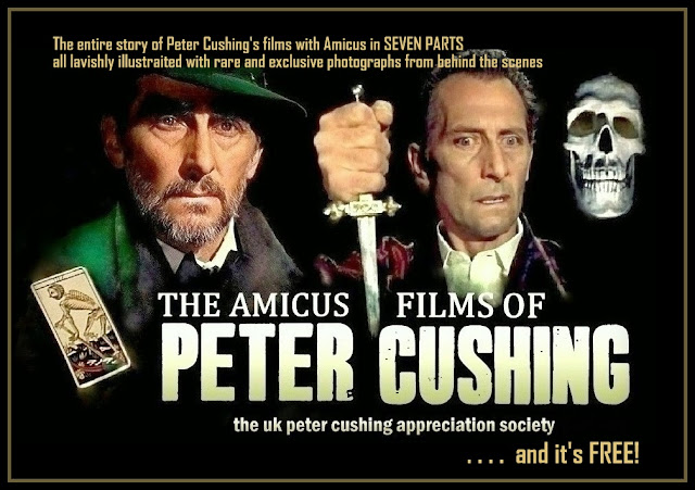 #GETTHECUSHIONITSCUSHING: The final moments of the Amicus film 'FROM BEYOND THE GRAVE perhaps represent the neatest of endings of any Amicus film. Nothing works better than a series of scenes involving a character that we just can't wait to get his or her 'just deserts'. The climax of the last scene, does just that, and even leads us into a just as neat wrap to the end of the film, 'Drop in anytime, I am always open . . .' An invitation to come again. Sadly, as an idea of a sequel or television series, that invitation was never followed up. The wind had finally gone out of the sails of the UK film industry, and finding finance for any project, was getting tough, even though 'FROM BEYOND THE GRAVE' was one of Amicus films top money earners. We've sang the praises of it's tight stories, not fat on the bone of this one, the performances, the whole package. With the exception of Amicus films first portmanteau film, DR TERRORS HOUSE OF HORRORS, and 'TORTURE GARDEN' 'FROM BEYOND THE GRAVE' is one of the series, that didn't take it's title or source material from the comic books that inspired Amicus films, ' TALES FROM THE CRYPT AND VAULT OF HORROR.