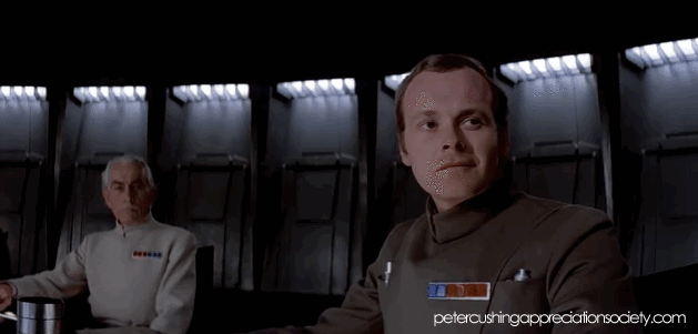 #GIMMETHEGIF: AND SO ON THE EVE of the opening of #ROGUEONE we count down the hours and share some requested GIFS of Peter Cushing from 'STAR WARS: A NEW HOPE' . . .