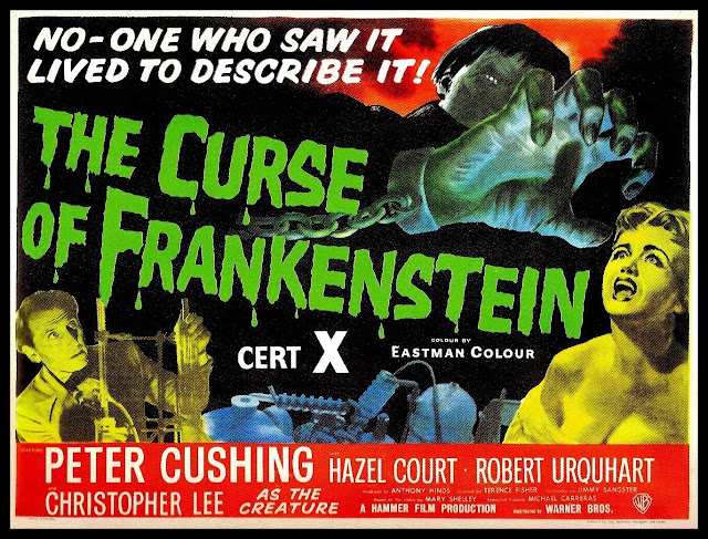 IT WAS THE ROLE THAT nailed #PeterCushing to the movie map and made both him and Christopher Lee into household names, with a mini budget movie produced by an even smaller UK film company called, #Hammerfilms. Jimmy Sangster wrote a scaled down script of the classic novel by Mary Shelley, #Britishfilm director, Terence Fisher called the shots, and 'The Curse of Frankenstein' not only hit huge box office success, it also changed the style of horror films and rebooted the Frankenstein film. Peter Cushing would go on to appear in a further FIVE Frankenstein films for Hammer. 'The Curse of Frankenstein' also presented Christopher Lee as an often child-like but savage 'monster-creation', his appearance compared to that of the traditional Universal #BorisKarloff Jack Pearce make up artist style, was quite a different. Hammer films continued their #Frankenstein series, but again in a different style to the Universal horror films, in a clever turn, they created a focus on adventures of The Baron himself, instead of the '#TheMonster'. It was a brilliant and box office friendly plan, as not only did the audience get a different creation for every new story and title, but also Cushing's amazing Baron for the price of one ticket!